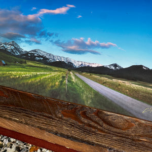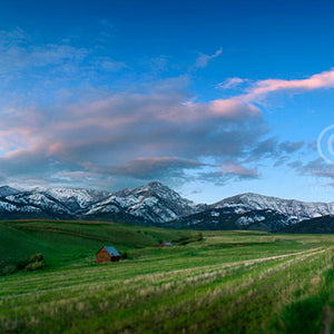 An late spring sunset over the Bridger Range and an old barn near Springhill, north of Bozeman Montana in 2008.